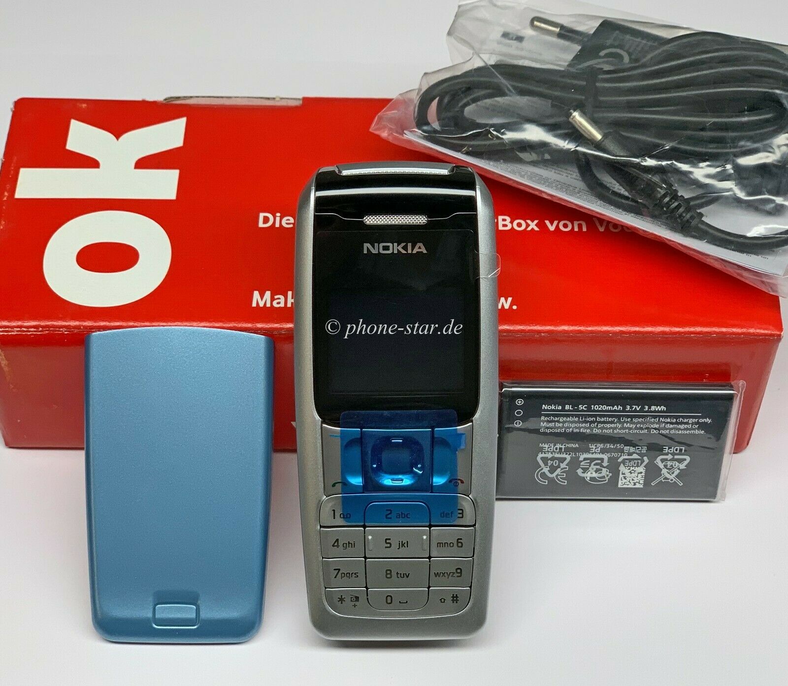 - Original Nokia Neugerät mit Displayfolie in der Vodafone-Box mit passendem IMEI-Etikett.
